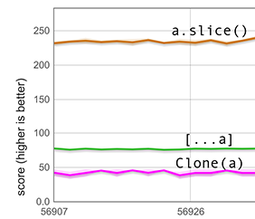 Ideally, all these options would have similar performance characteristics. Unfortunately, if you pick [...arr] in V8, it is (or was) likely to be slower than clone! The reason is that V8 essentially transpiles [...arr] into an iteration like the following:
