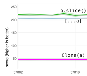 The simple use case of spreading an array arr into a new array, without adding any further elements before or behind, [...arr], is considered a concise, idiomatic way to shallow-clone arr in ES2015. Unfortunately, in V8, the performance of this idiom lagged far behind its ES5 counterpart. The goal of Hai’s internship was to change that!