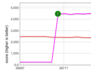 Performance improvement of spreading a set with 100,000 integers (magenta, about 18×), shown here in comparison with a for-of loop (red)